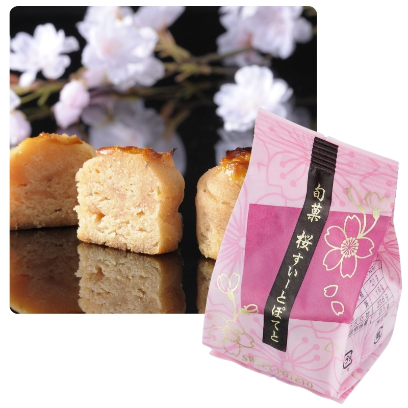 大人気のすいーとぽてとに桜葉入り桜餅や桜花エキスを加え、じっくり焼き上げた春限定の桜香るスイートポテトです。