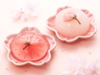 国産の桜の花びらを使用して、きれいにプリンの中に閉じ込めました。