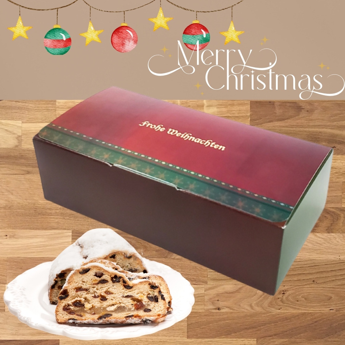 近年人気のクリスマススイーツ「シュトーレン」の贈り物にぴったりな、重厚感あふれるデザインボックスです。