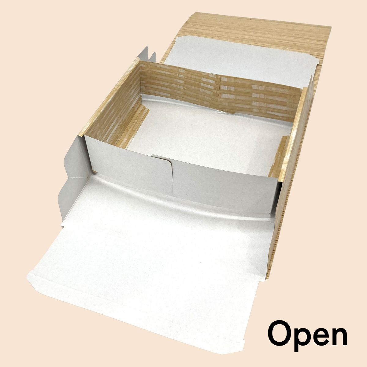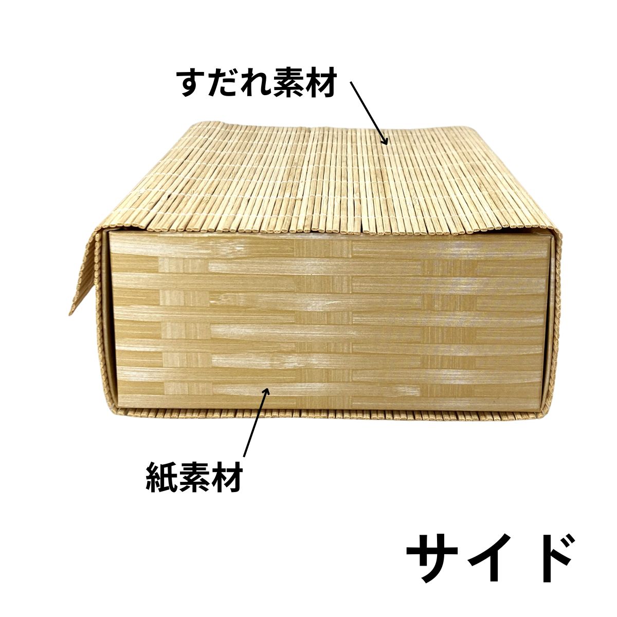 フタ部分はすだれ、箱部分は紙製ですので平納品させて頂きます。在庫に場所をとりません。