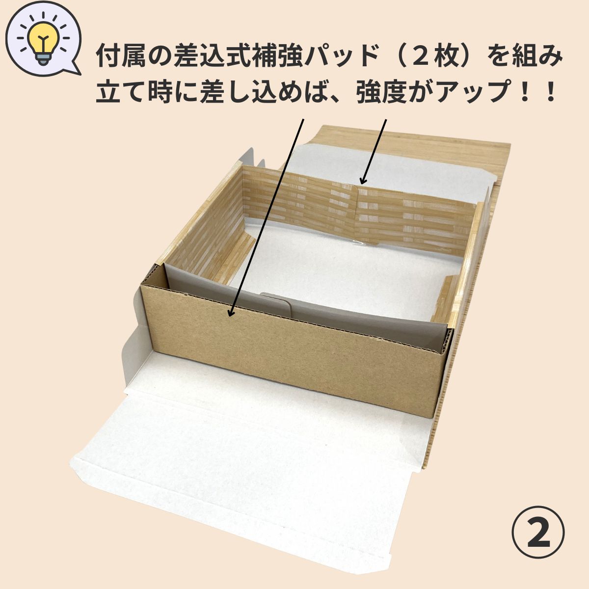 付属の差込式補強パット(2枚)を組み立て時に差し込めば、強度がアップ!!