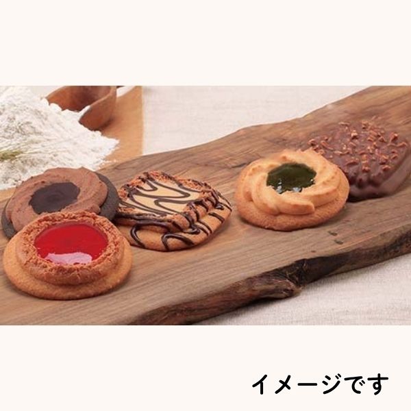 二度焼きした2種類のクッキー生地に、チョコレート、フルーツジャムなどをデコレーションした素朴で懐かしいお菓子です。