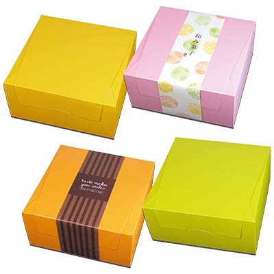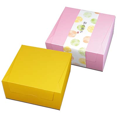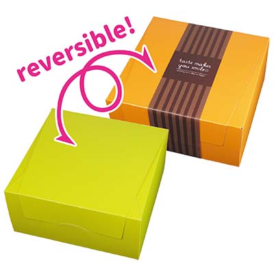 どちらも華やかな色なのでどちらを表にしても、店頭でも、中のお菓子も映えます!