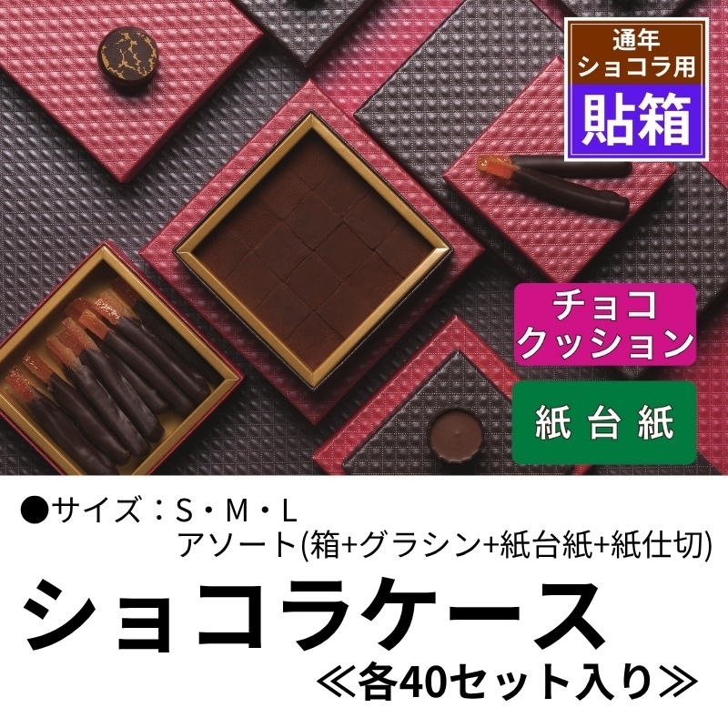 【通年トリュフ貼箱】ショコラケース 〔箱・チョコクッション・紙仕台紙セット〕赤/茶(S・M・L・アソート )@167.20〜186.70円 [C32-39]