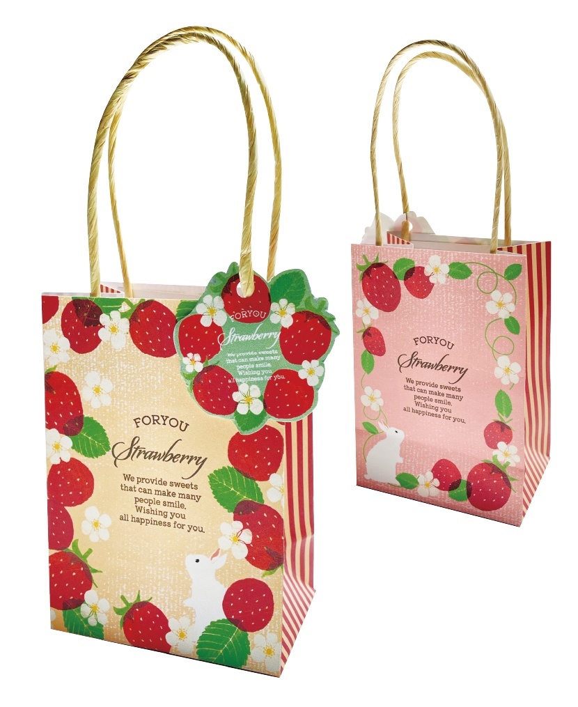 かわいいイチゴ柄デザインがとても目立って使いやすいプチ紙袋です。