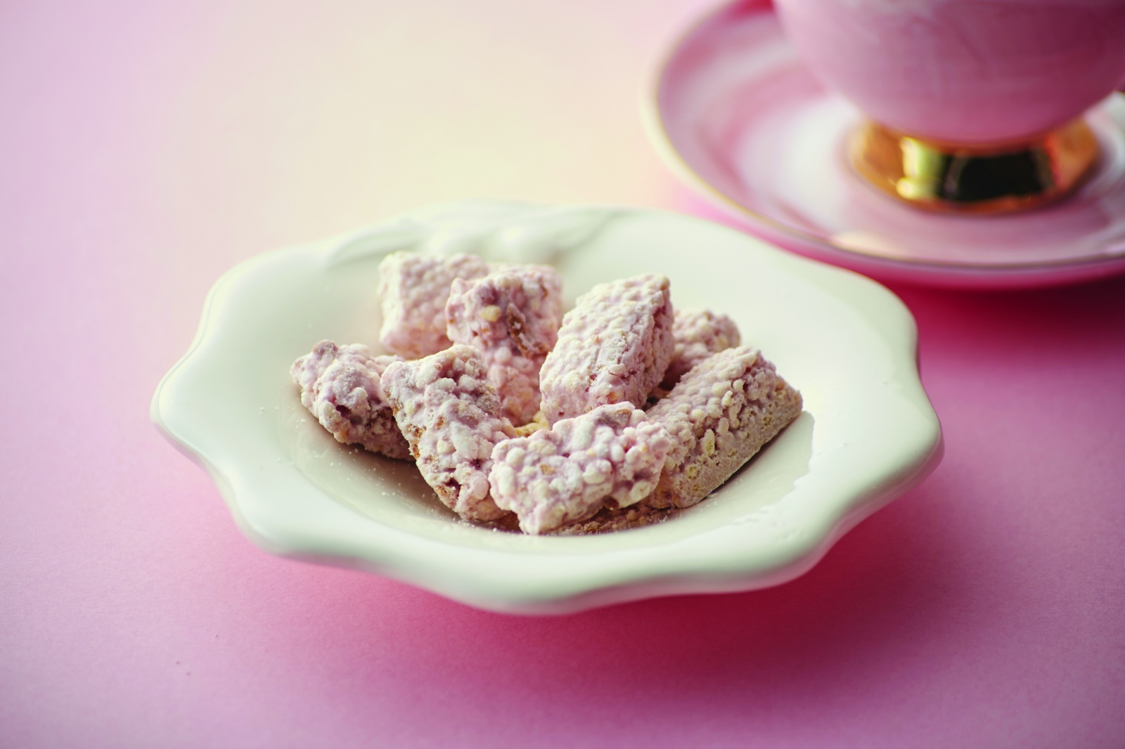 ホワイトチョコレートにほんのり塩味の効いた桜葉をコーティングしたクランチチョコレートです