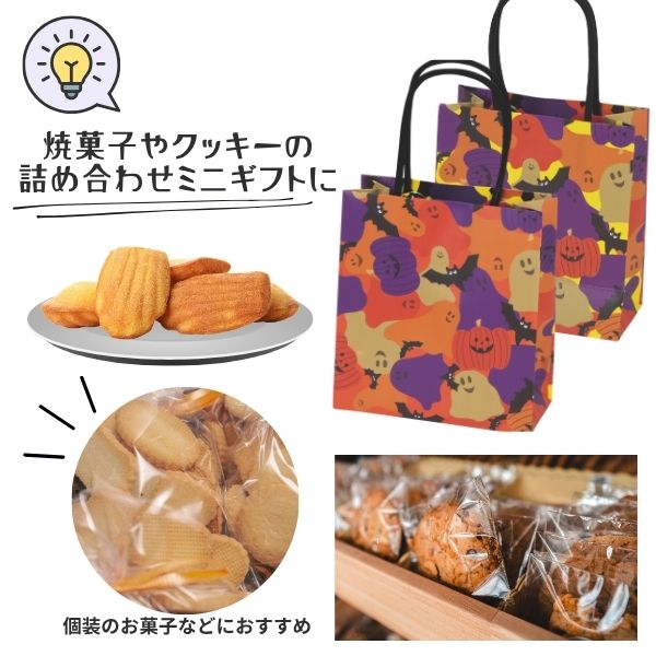 お菓子の詰め合わせにもぴったりで、店舗のハロウィンディスプレイにも最適です。
