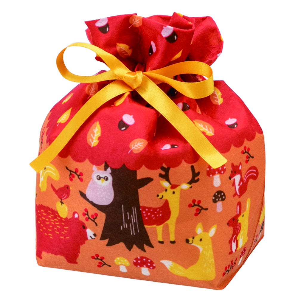 【秋】巾着リボン小FP 森のどうぶつ秋柄 40枚入/単価 154円 [LA469]