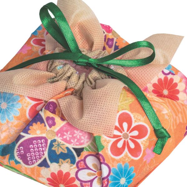 上品なギフトが簡単に仕上がる、不織布素材の風呂敷巾着です。