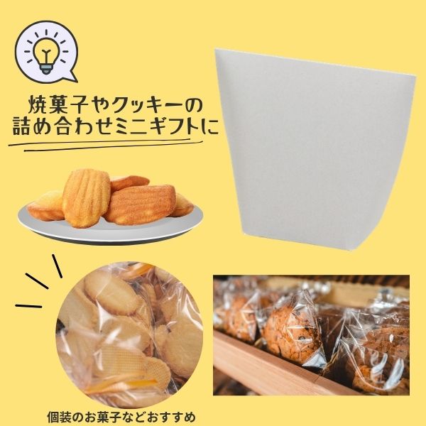 コンパクトながら高さのある設計で、焼き菓子や小物、プチギフトに最適。