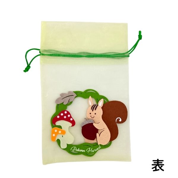 簡単に秋・ハロウィンらしいギフトが仕上がる、巾着タイプのラッピング袋です。